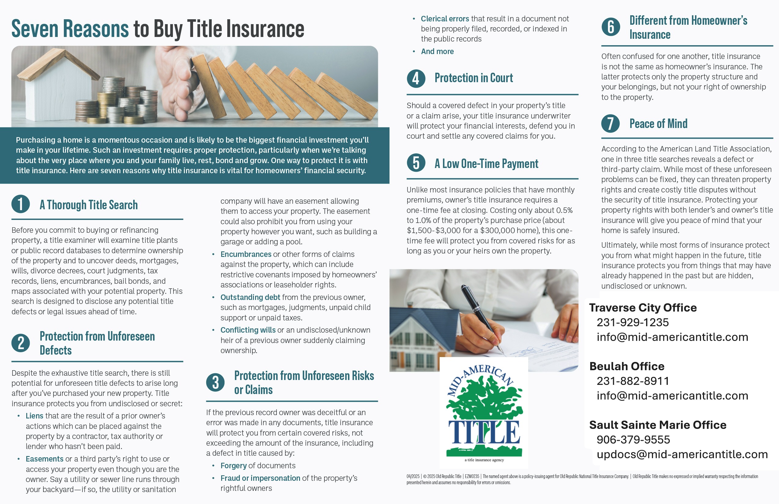 Please contact one of our title professionals to learn more about title insurance and how it protects both buyers and sellers in a real estate transaction.